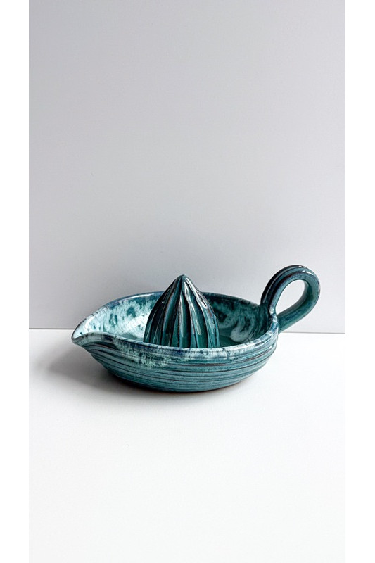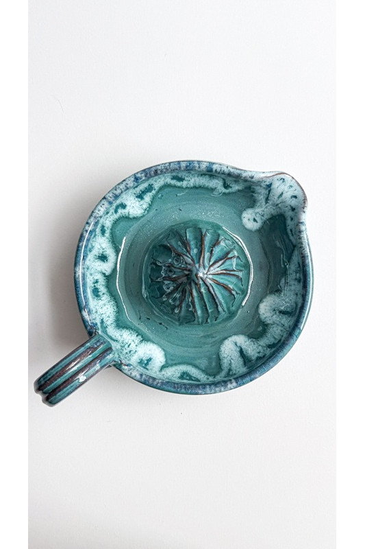 Wyciskarka do cytrusów "Turkus z bielą''. Ręcznie robiona ceramika z Krety, 9016