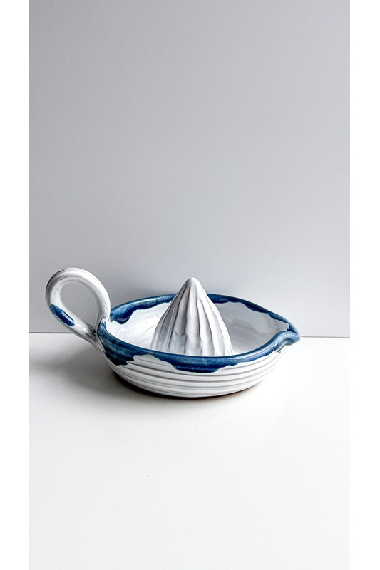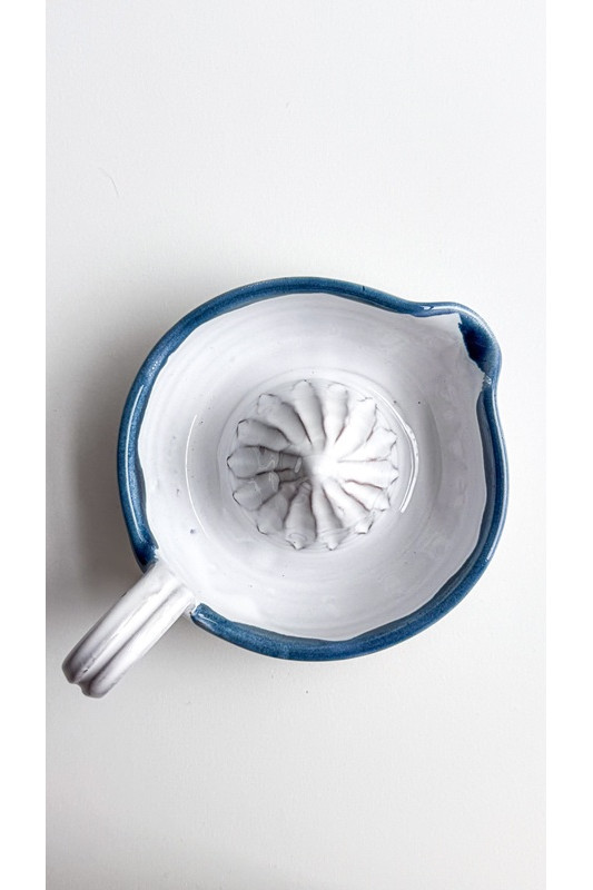 Wyciskarka do cytrusów "Biel z niebieskim''. Ręcznie robiona ceramika z Krety, 9017