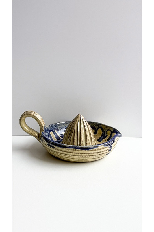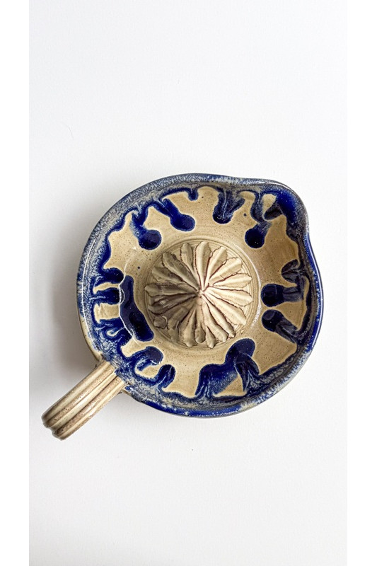 Wyciskarka do cytrusów "Beż z kobaltem''. Ręcznie robiona ceramika z Krety, 9018