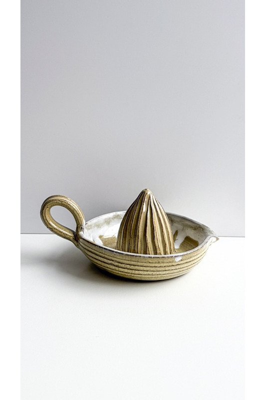 Wyciskarka do cytrusów "Beż z bielą''. Ręcznie robiona ceramika z Krety, 9021