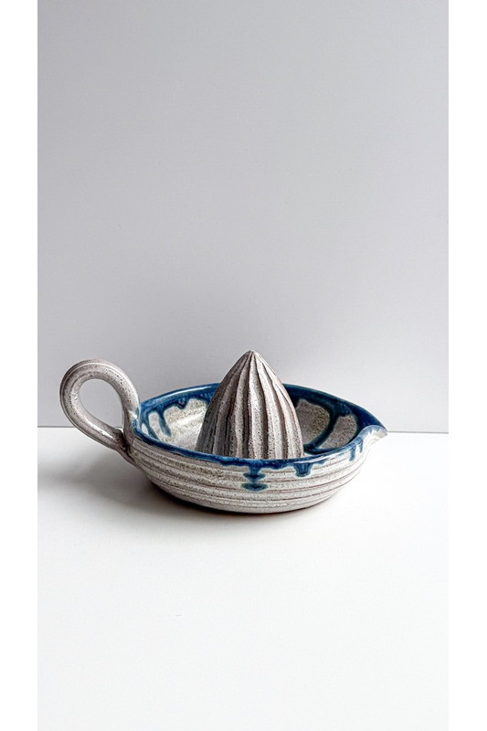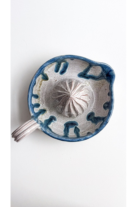 Wyciskarka do cytrusów "Piaskowa biel z niebieskim''. Ręcznie robiona ceramika z Krety, 9023