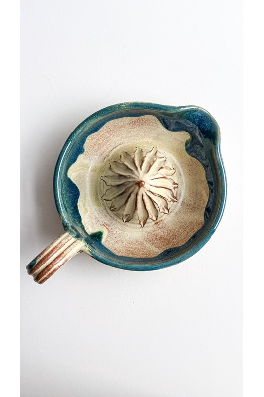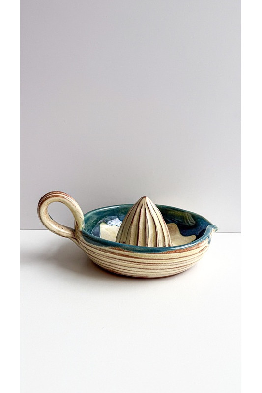 Wyciskarka do cytrusów "Beż z turkusem''. Ręcznie robiona ceramika z Krety, 9024