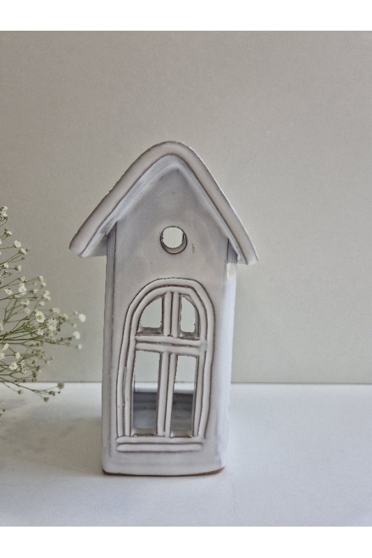 Lampion Domek "Biały''. Ręcznie robiona ceramika z Krety, 3041