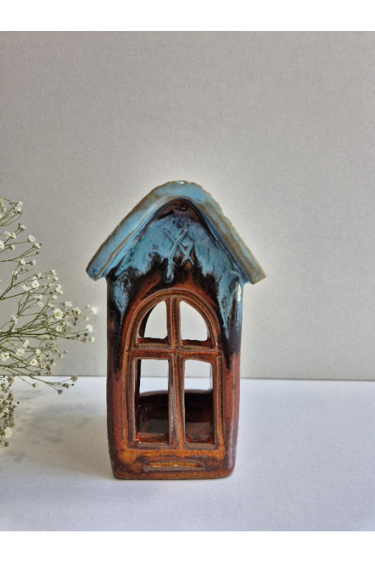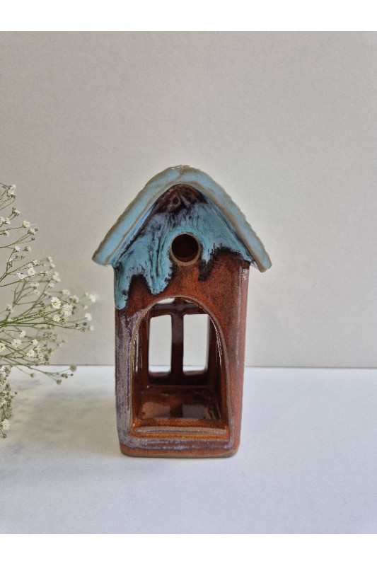 Lampion Domek mały "Czerwień z turkusem''. Ręcznie robiona ceramika z Krety, 3025