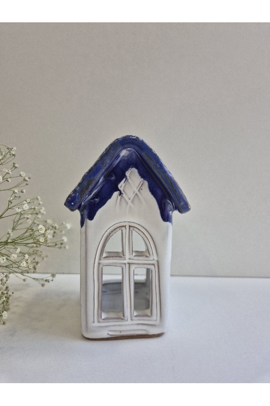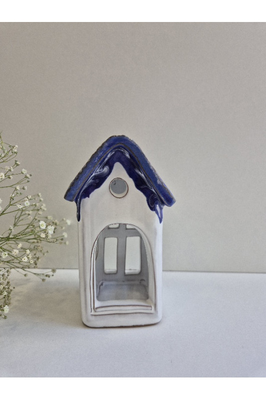 Lampion Domek mały "Biel z kobaltem''. Ręcznie robiona ceramika z Krety 3032
