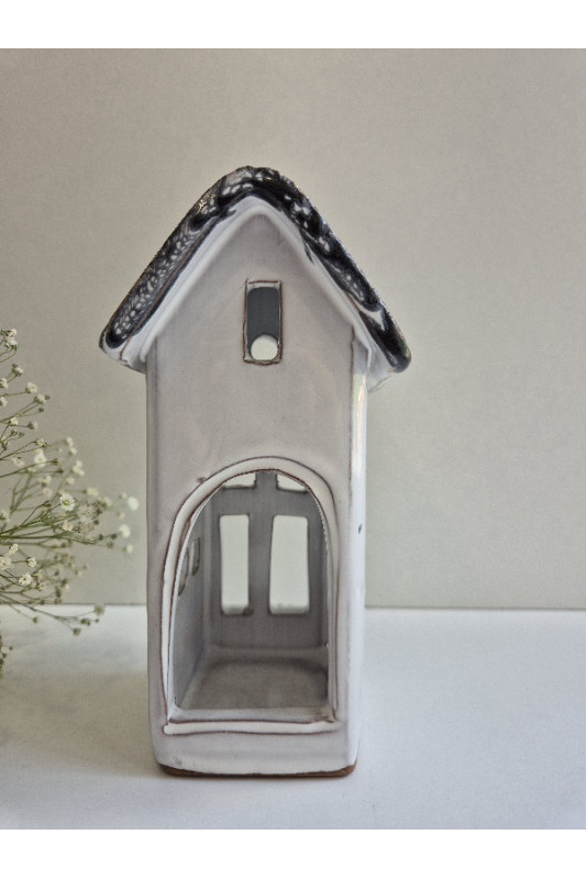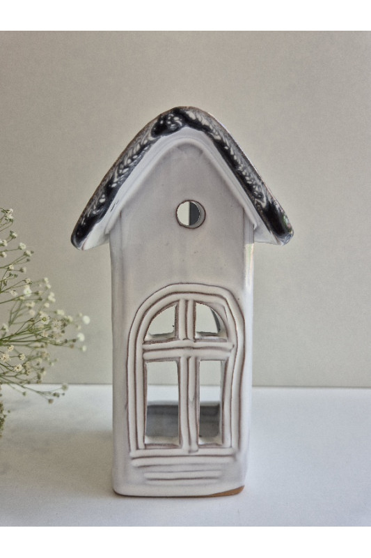 Lampion Domek "Biel z czernią''. Ręcznie robiona ceramika z Krety, 3045