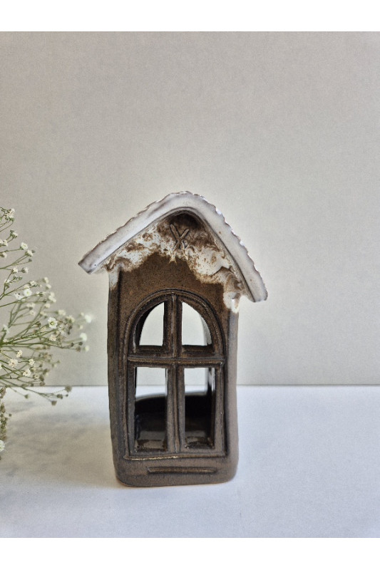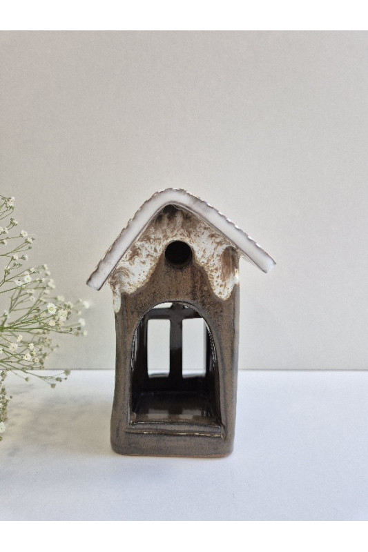Lampion Domek mały "Kawa z bielą''. Ręcznie robiona ceramika z Krety 3031