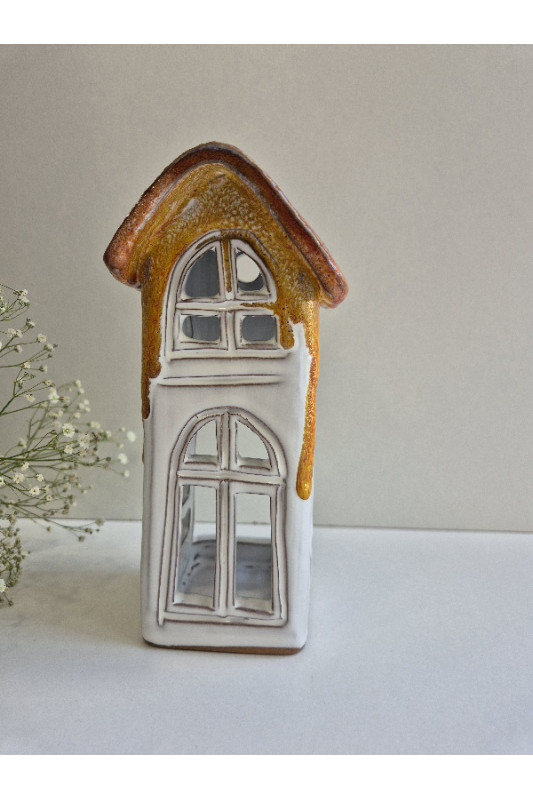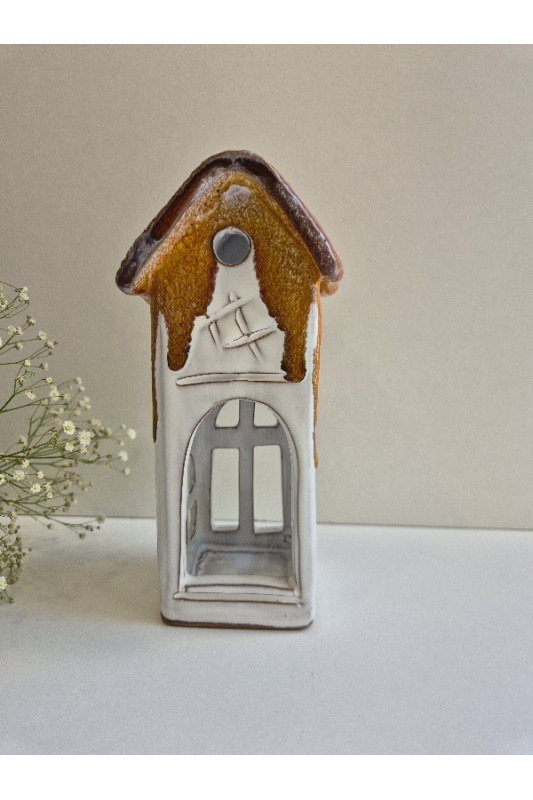 Lampion Domek większy "Biel z pomarańczą''. Ręcznie robiona ceramika z Krety, 3051