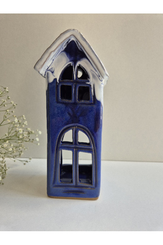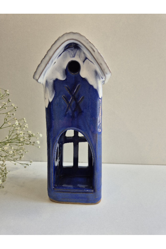 Lampion Domek większy "Kobalt z bielą ''. Ręcznie robiona ceramika z Krety, 3055