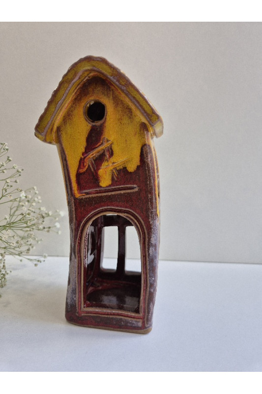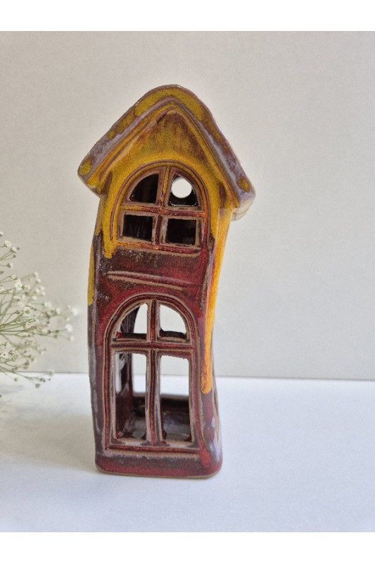Lampion Domek większy "Czerwień z żółtym ''. Ręcznie robiona ceramika z Krety, 3056
