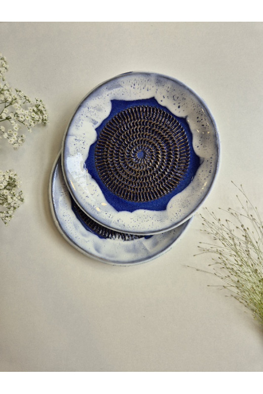 Talerzyk z tarką "Kobalt z bielą". Ręcznie robiona ceramika z Krety, 913
