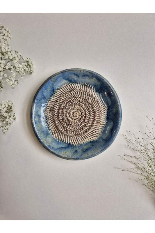 Talerzyk z tarką "Beż z niebieskim". Ręcznie robiona ceramika z Krety, 905