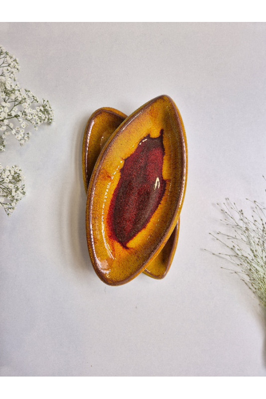 Talerzyk na przekąski "Czerwień z żółtym". Ręcznie robiona ceramika z Krety, 923