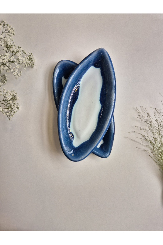 Talerzyk na przekąski "Biel z niebieskim". Ręcznie robiona ceramika z Krety, 927