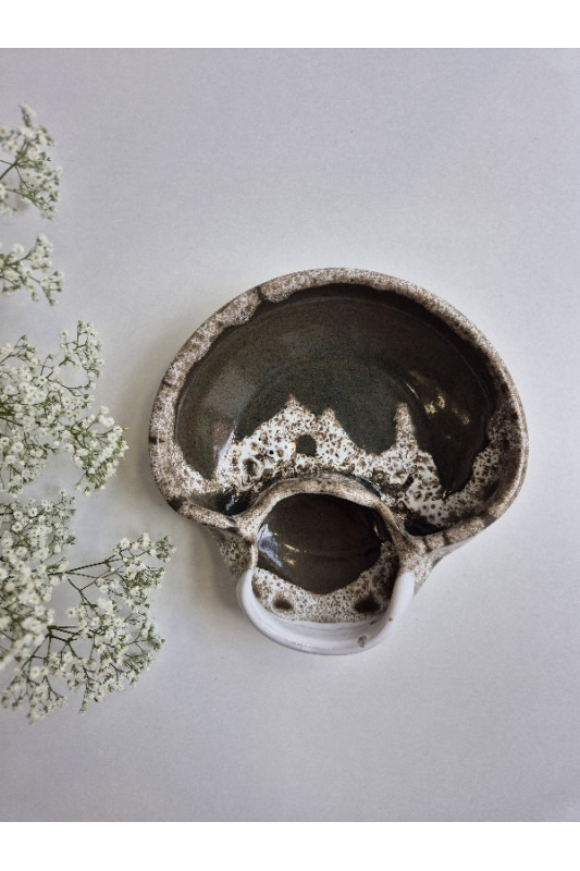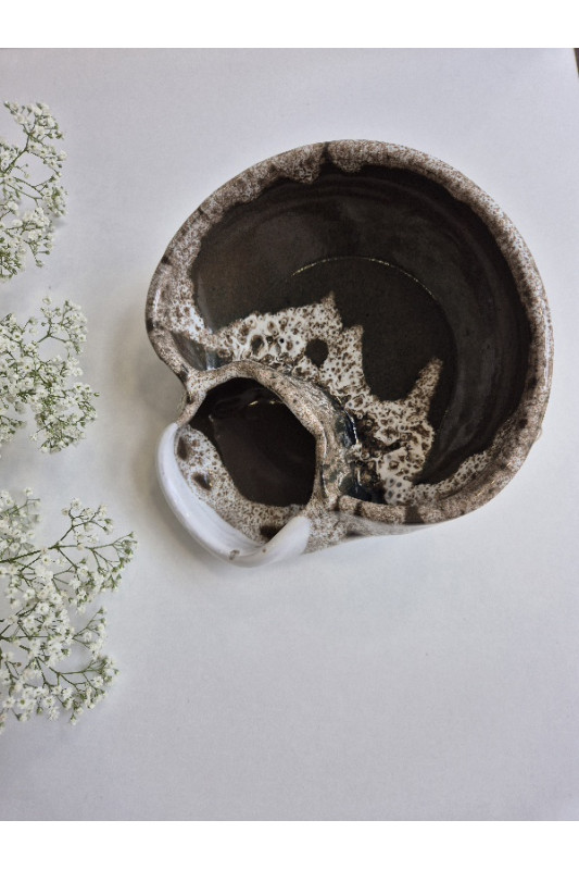 Miseczka z przegródką "Kawa z bielą". Ręcznie robiona ceramika z Krety, 965