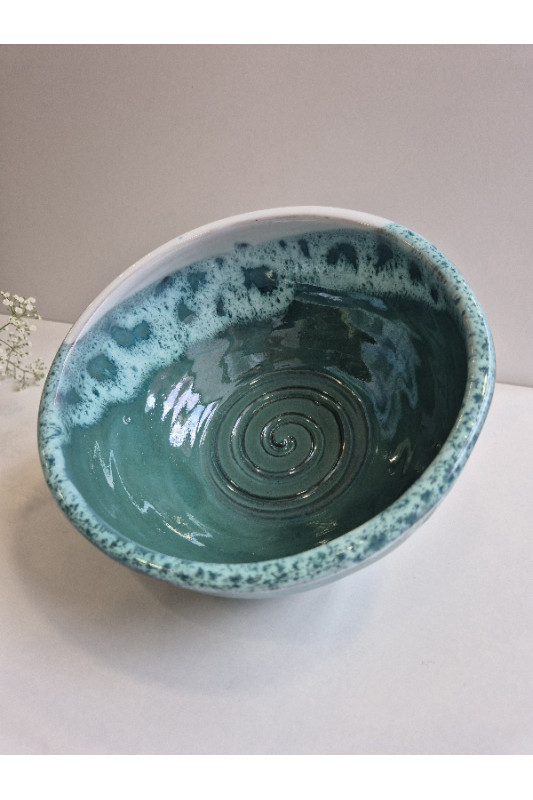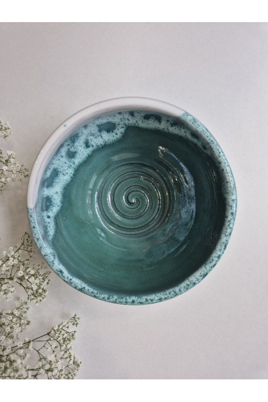 Miska mała prosta "Turkus z bielą''. Ręcznie robiona ceramika z Krety, 987