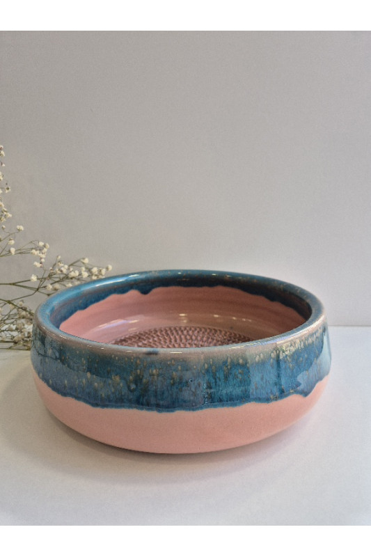 Miska z tarką "Róż z turkusem''. Ręcznie robiona ceramika z Krety, 5014