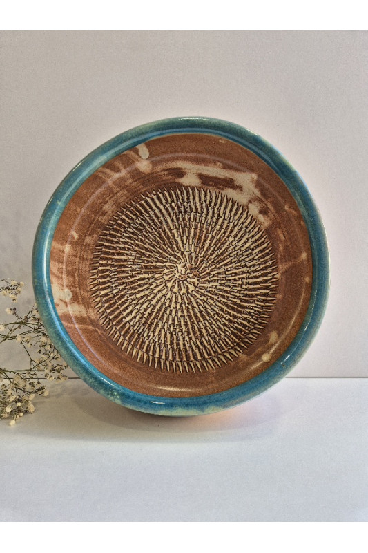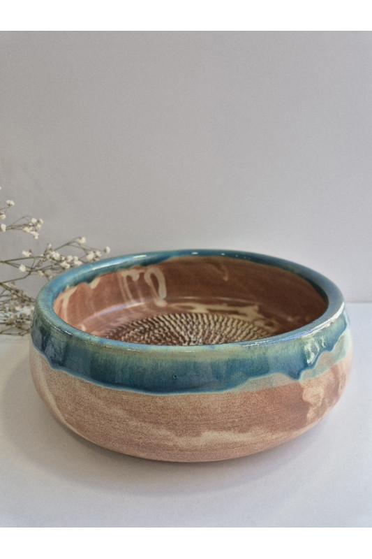 Miska z tarką "Beż z turkusem''. Ręcznie robiona ceramika z Krety, 5015