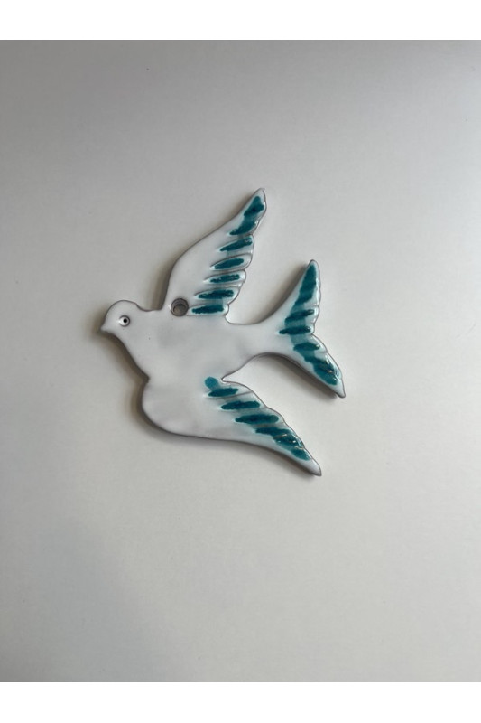 Zawieszka JASKÓŁKA "Biel z turkusem''. Ręcznie robiona ceramika z Krety, 1052