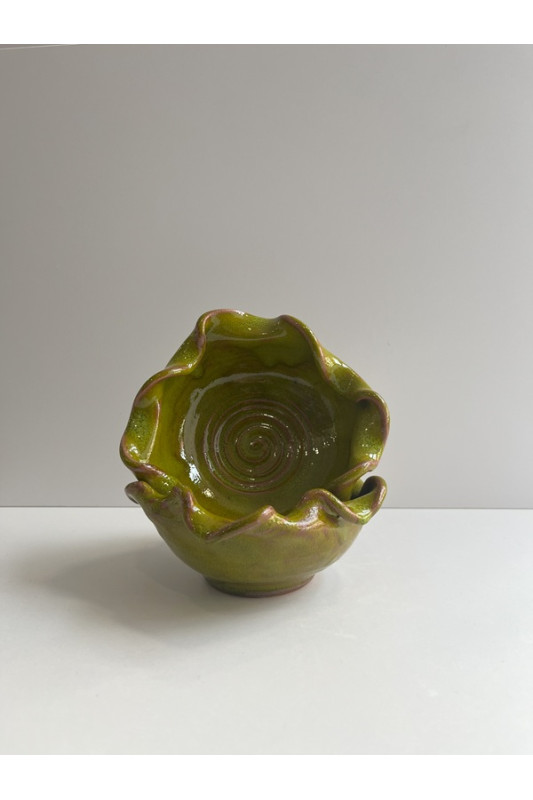 Miska mała z falą "Oliwkowa''. Ręcznie robiona ceramika z Krety, 1063