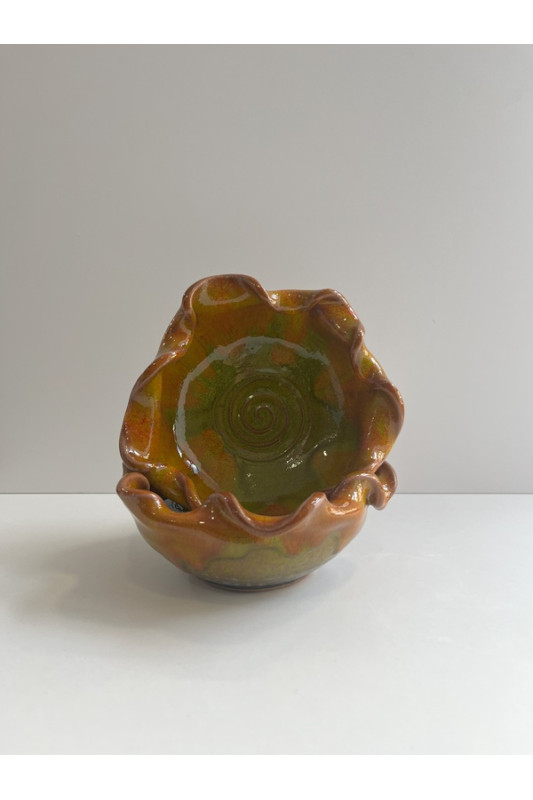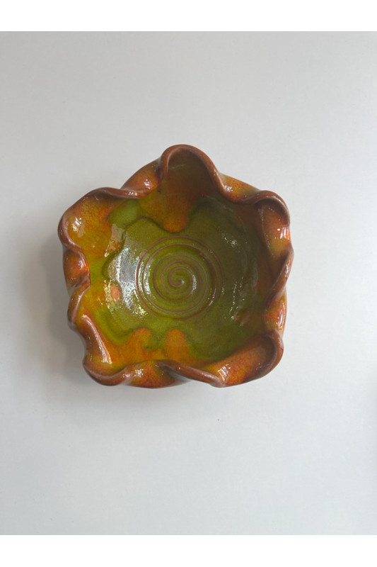 Miska mała z falą "Oliwka z pomarańczą''. Ręcznie robiona ceramika z Krety, 1070