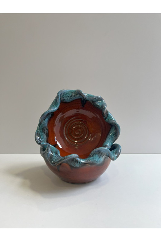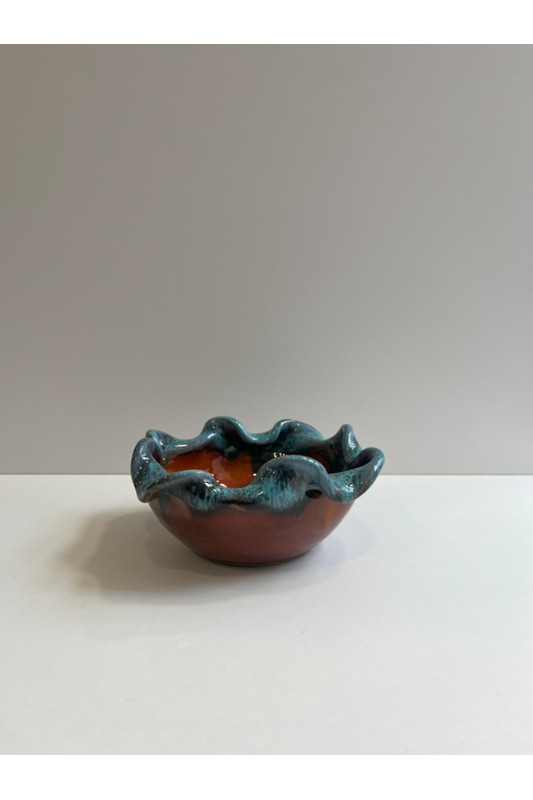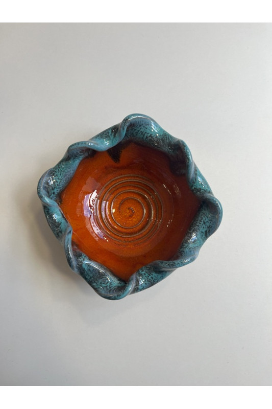Miska mała z falą "Czerwień z turkusem''. Ręcznie robiona ceramika z Krety, 1071