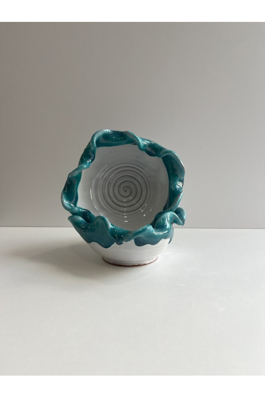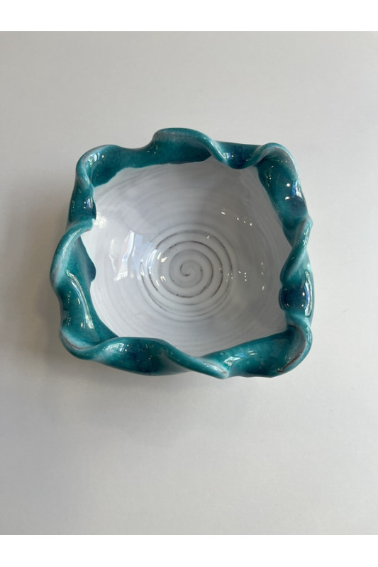 Miska mała z falą "Biel z turkusem''. Ręcznie robiona ceramika z Krety, 1072