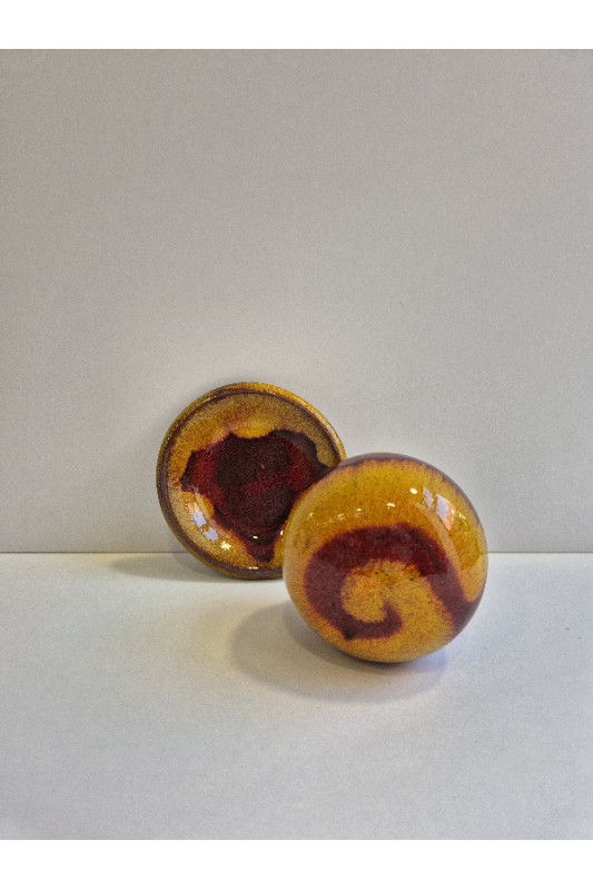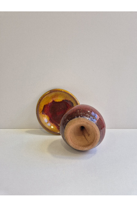 Solniczka z talerzykiem "Czerwień z Żółtym". Ręcznie robiona ceramika z Krety, 1007