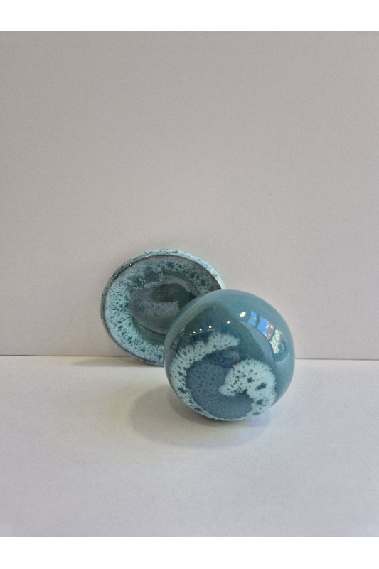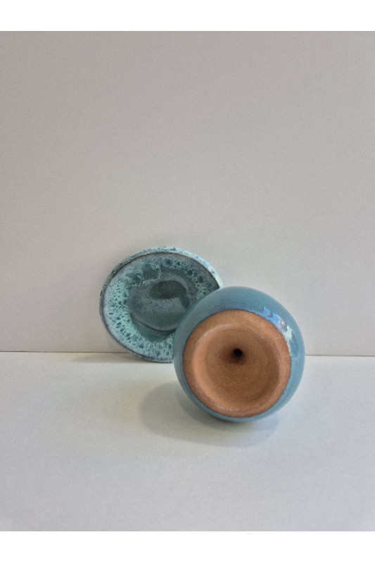 Solniczka z talerzykiem "Turkus z bielą". Ręcznie robiona ceramika z Krety, 1011