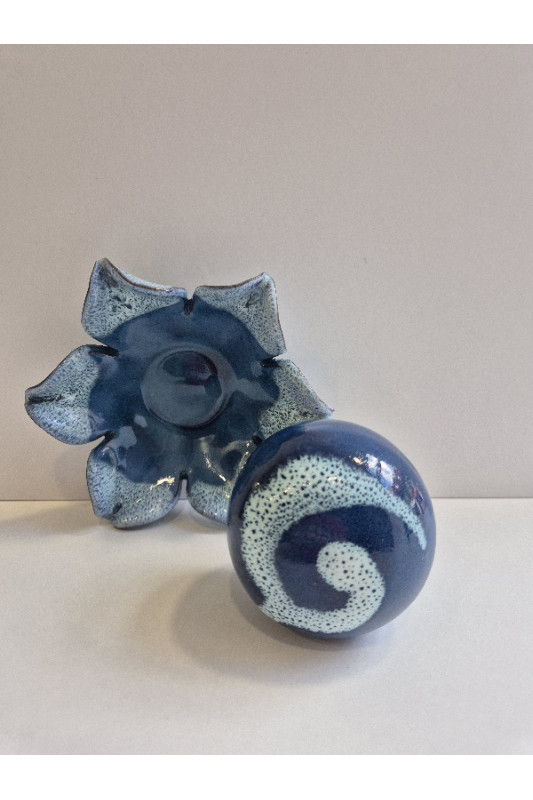 Solniczka na kwiatku "Niebieski z bielą". Ręcznie robiona ceramika z Krety, 1021
