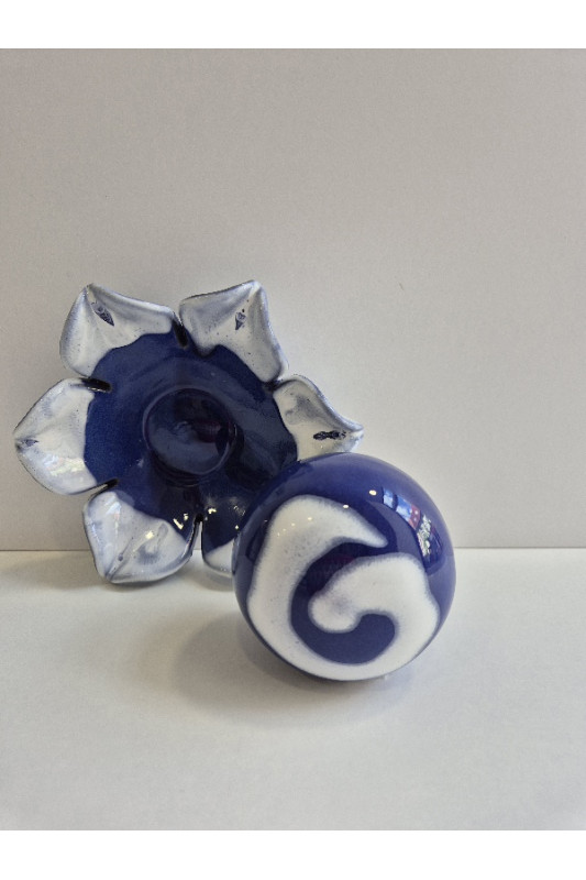 Solniczka na kwiatku "Kobalt z bielą". Ręcznie robiona ceramika z Krety, 1023