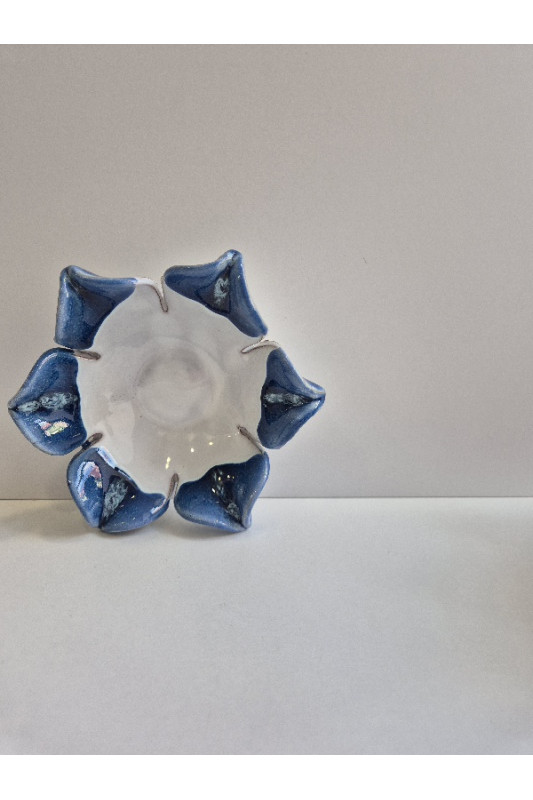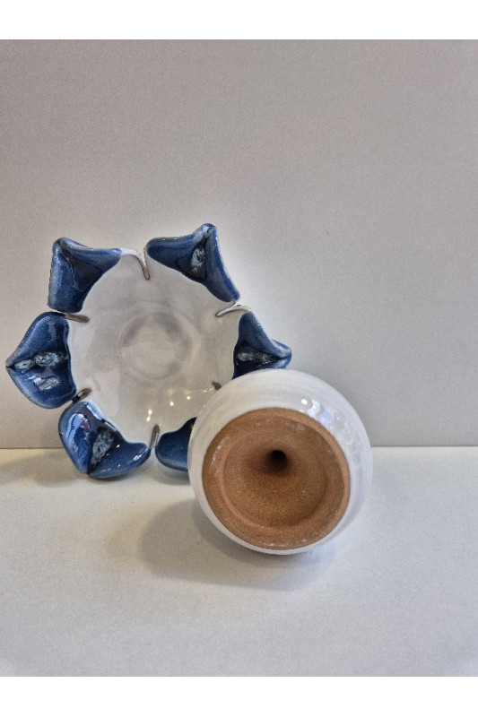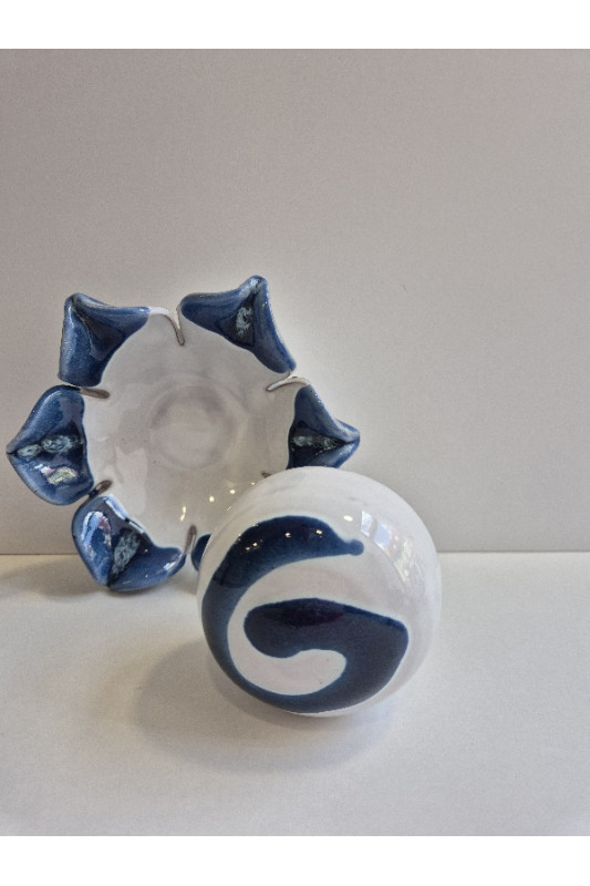 Solniczka na kwiatku "Biały z niebieskim". Ręcznie robiona ceramika z Krety, 1026