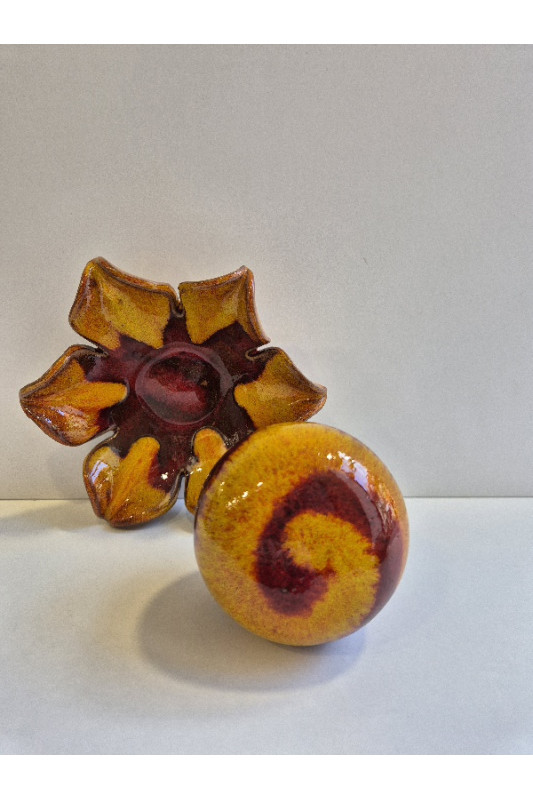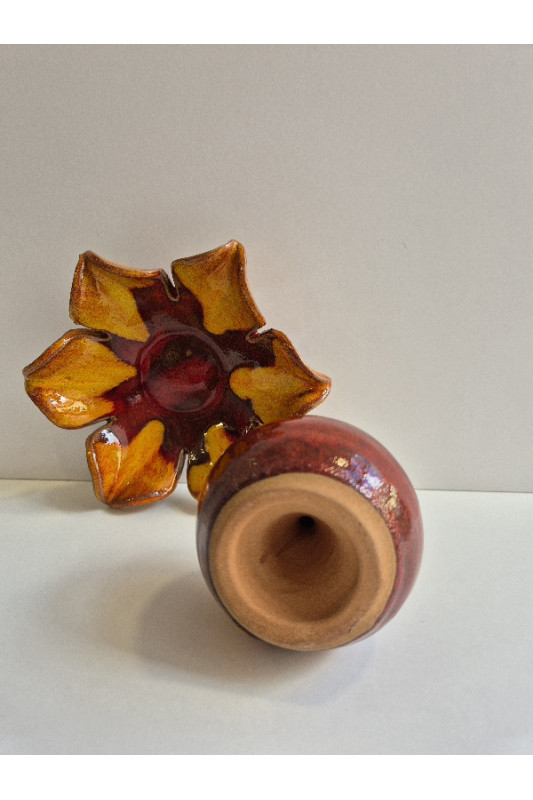 Solniczka na kwiatku "Czerwień z żółtym". Ręcznie robiona ceramika z Krety, 1032