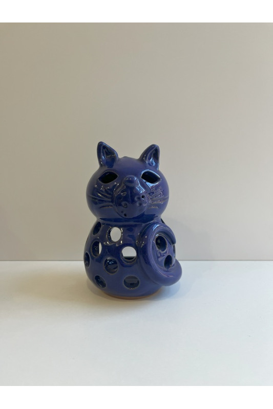 Lampion kotek "Kobaltowy'. Ręcznie robiona ceramika z Krety, 1081