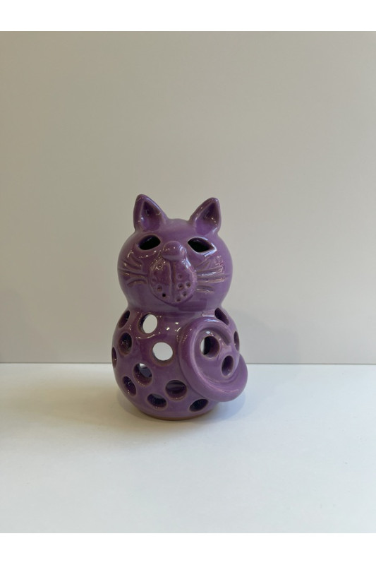 Lampion kotek "Fioletowy". Ręcznie robiona ceramika z Krety, 1084