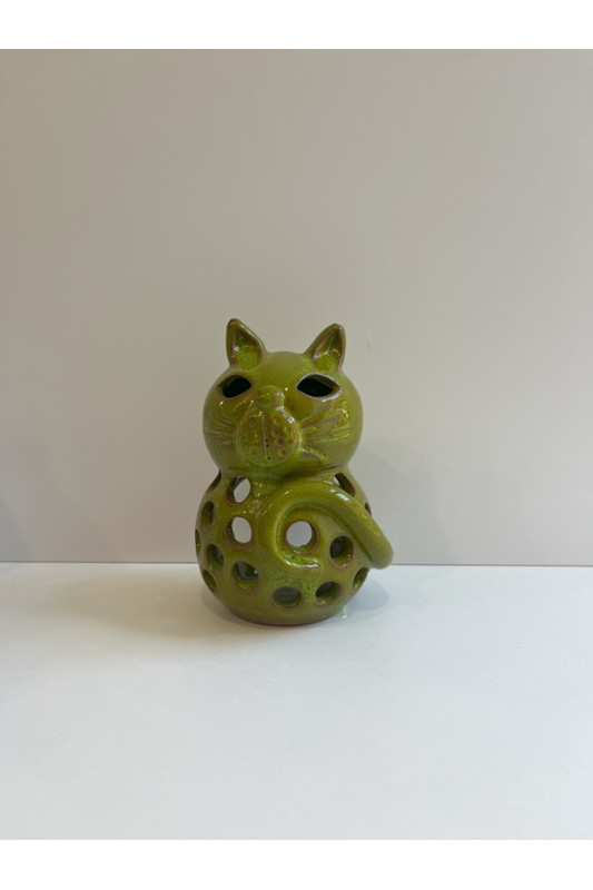 Lampion kotek "Oliwkowy". Ręcznie robiona ceramika z Krety, 1085