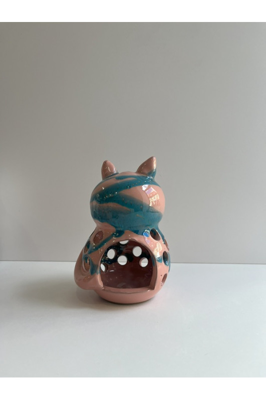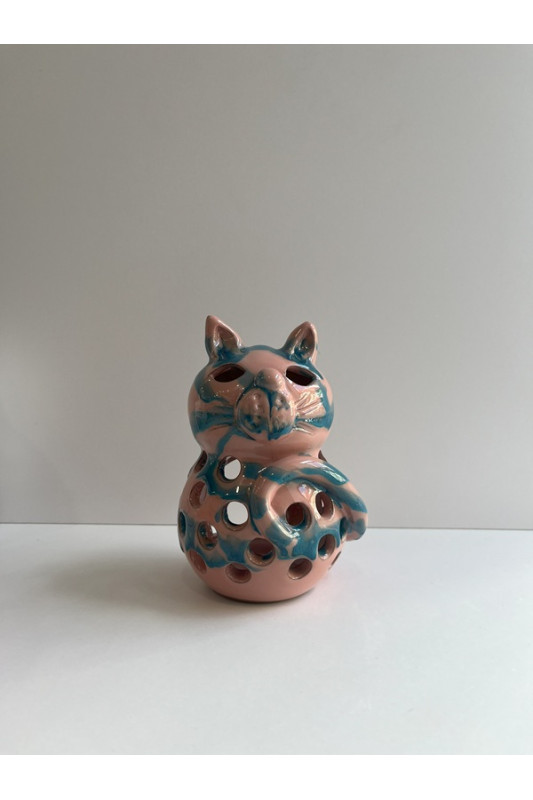 Lampion kotek "Róż z niebieskim". Ręcznie robiona ceramika z Krety, 1089