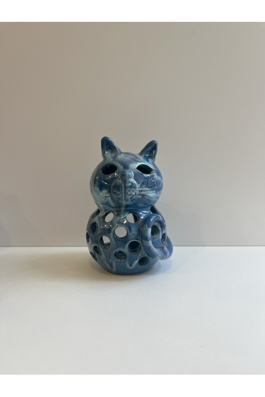 Lampion kotek "Niebieski z bielą". Ręcznie robiona ceramika z Krety, 1090