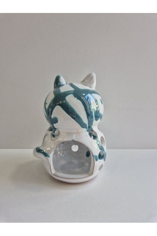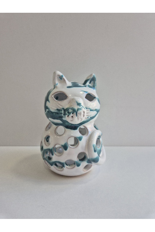 Lampion kotek "Biel z turkusem". Ręcznie robiona ceramika z Krety, 1091