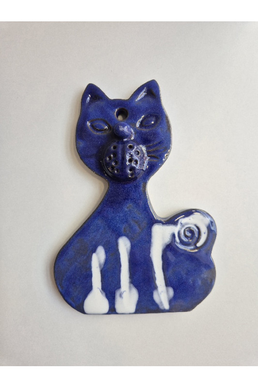 Zawieszka KOTEK "Kobalt z bielą''. Ręcznie robiona ceramika z Krety, 1111