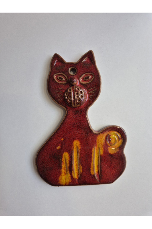 Zawieszka KOTEK "Czerwień z żółtym''. Ręcznie robiona ceramika z Krety, 1115