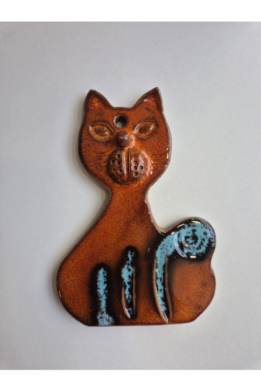 Zawieszka KOTEK "Czerwień z turkusem''. Ręcznie robiona ceramika z Krety, 1116