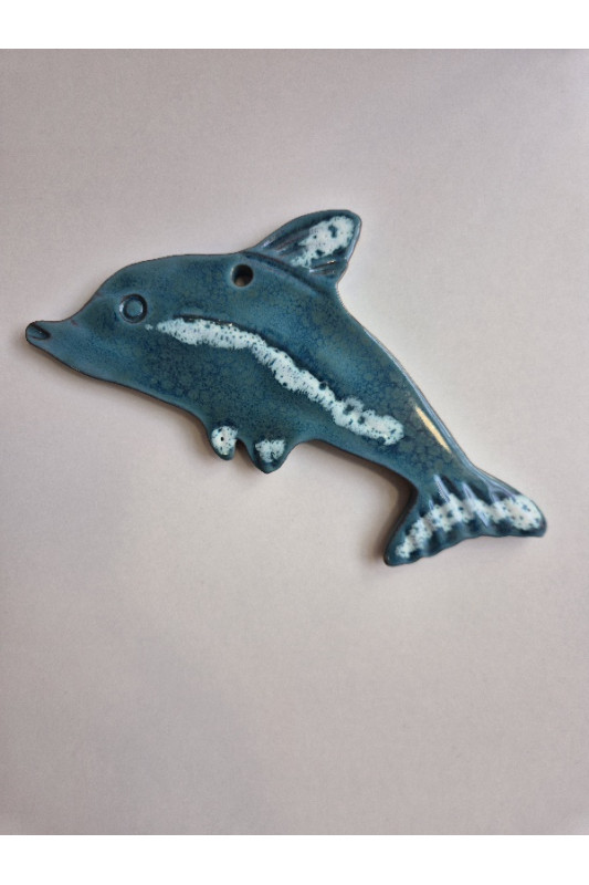 Zawieszka DELFIN "Turkus z bielą''. Ręcznie robiona ceramika z Krety, 1131