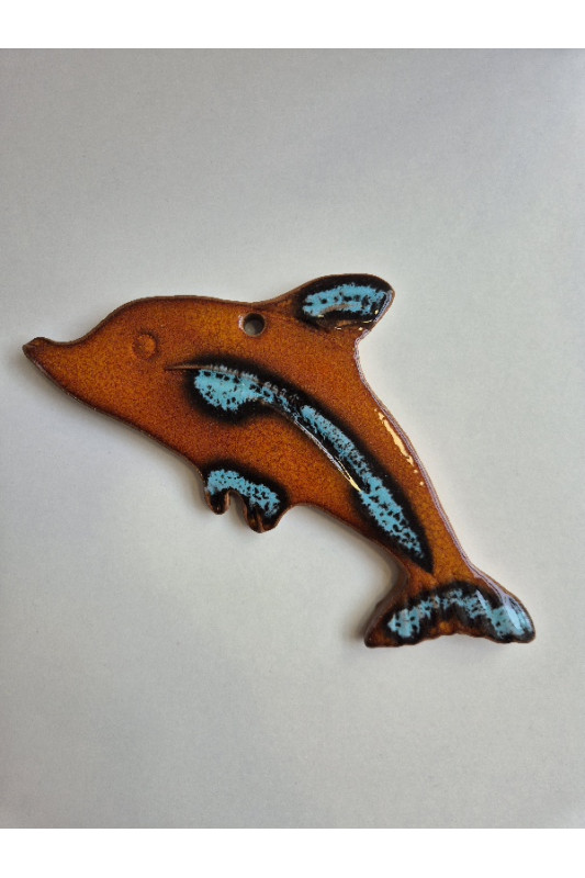 Zawieszka DELFIN "Czerwień z turkusem''. Ręcznie robiona ceramika z Krety, 1134