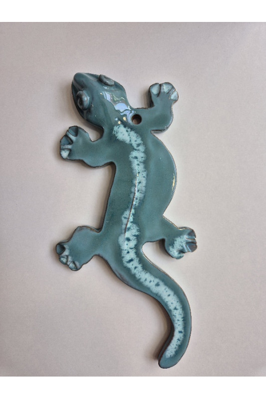 Zawieszka JASZCZURKA "Turkus z bielą''. Ręcznie robiona ceramika z Krety, 1124