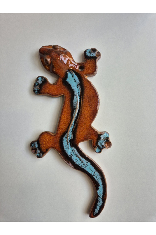 Zawieszka JASZCZURKA "Czerwień z turkusem''. Ręcznie robiona ceramika z Krety, 1125