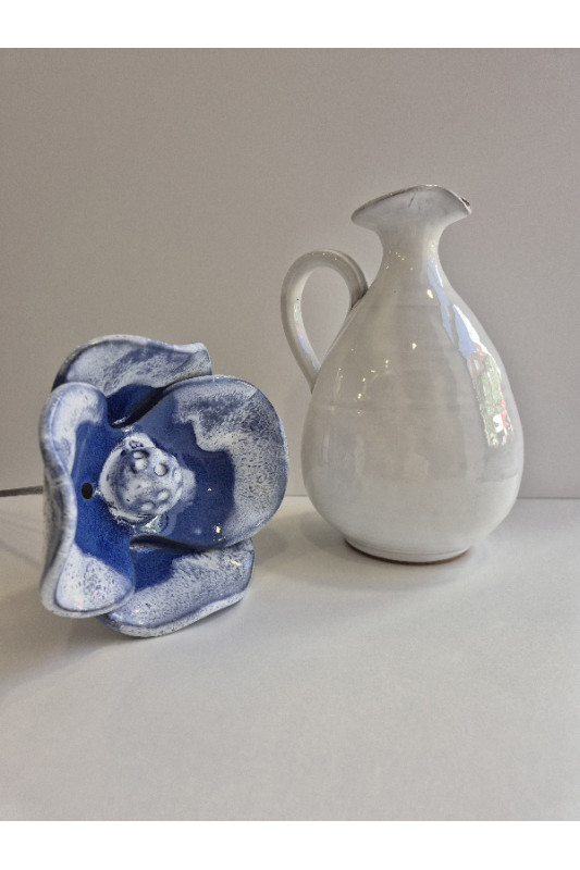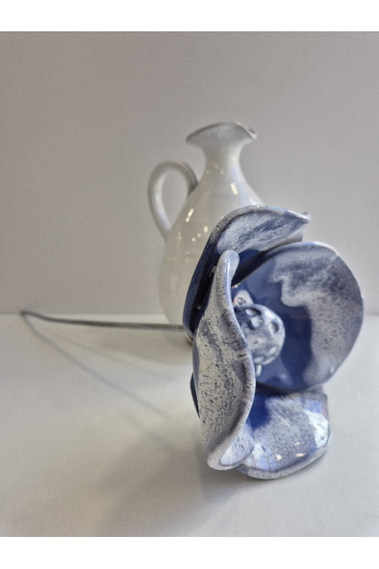 Kwiat ceramiczny większy "Kobalt z bielą''. Ręcznie robiona ceramika z Krety, 1107