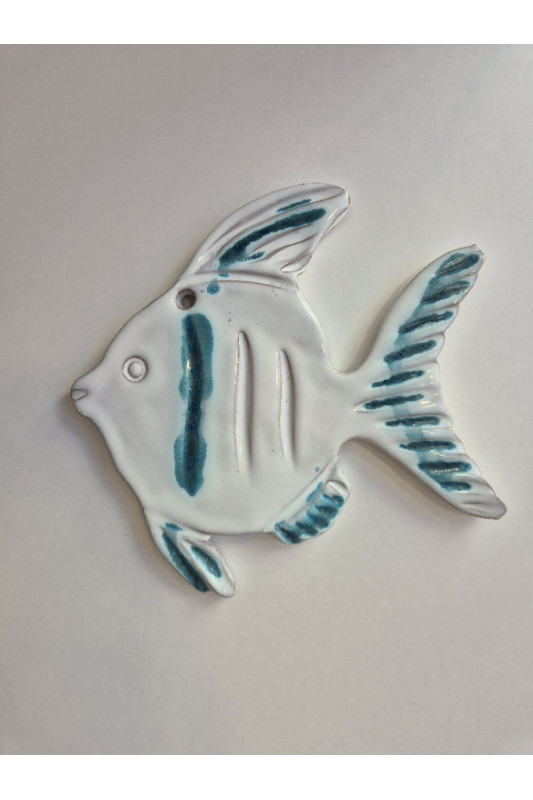Zawieszka RYBA "Biel z turkusem". Ręcznie robiona ceramika z Krety, 1165