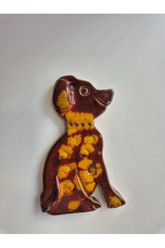Zawieszka PIESEK "Czerwień z żółtym". Ręcznie robiona ceramika z Krety, 1151