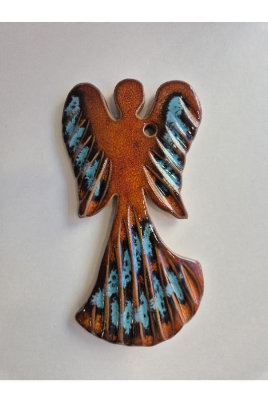Zawieszka większy ANIOŁ "Czerwień z turkusem". Ręcznie robiona ceramika z Krety, 1176
